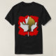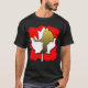 Röd bakgrund med en stor vitlönnlöv och ett guld avbildar av en hockeyspelare. Tillfoga text, om du gillar, för att göra den speciell! Tillgängligt i vuxen och ungar storleksanpassar på greenbaby!