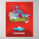 Kanada karta illustrerade en reseaffisch med en karta och en klassisk blå bil.
