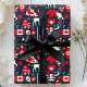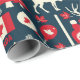 Kanadas kanadensiska julvinter Moose Mönster Wrapping Papper. Vackrött och vitt vinterkanadensiskt inslag mot en marin blå bakgrund. I närheten av en älg, julgranar, Kanada, flagga, maple löv och isrockor. Perfekt för julafton och helgdagarna.