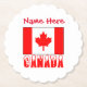 Personliggjord pappersunderlägg som visar snötäckta bokstäver som läser CANADA och finns under den kanadensiska flaggan. Lägg till ditt namn för att anpassa utseendet för en speciell tillställning eller händelse. Den kanadensiska flaggan har en vit mitt med ett rött lönnlöv inuti. Till höger och vänster om det vita området finns två röda. Perfekt för din Canada Day-firande. Använd vid familjesammanträffar, klubbar, resegrupper eller vilken fest som helst som firar Kanada.