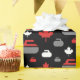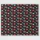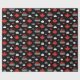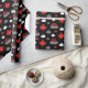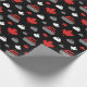 Inpackning av papper som presenterar en lönnlöv och krullar stenmönster i rött, vit och grå färg på svart bakgrund. Perfekt för hårrullear och krullande fläktar.