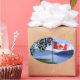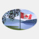 Klistermärken med min konst av en kanadensisk flagga som blickar ut över en sjö, gröna kullar och ett lönnträd.