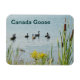 En digital målning av kanadensiska gäss (Branta canadensis) som simmar med kattlar (Typha latifolia) och annan vegetation i förgrunden. Anpassadet som läser "Canada Goose" visas också.
