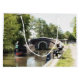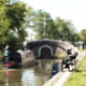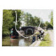 En konstkonstruktion av en smalbåt som närmar sig ett lås och en man som fiskar. Kanalbåtar, som i Förenade kungariket kallas smalbåtar, användes ursprungligen för att transportera varor runt land. De används nu främst för fritid och lockar människor från hela världen att njuta av vår landsbygd. Dessa båtar ser mycket söt ut med sina ljusa färgader, traditionellt blåa, röda eller grönt. Blommor och slottsdesigner är också en del av de mer traditionella båtarna.