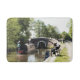 En konstkonstruktion av en smalbåt som närmar sig ett lås och en man som fiskar. Kanalbåtar, som i Förenade kungariket kallas smalbåtar, användes ursprungligen för att transportera varor runt land. De används nu främst för fritid och lockar människor från hela världen att njuta av vår landsbygd. Dessa båtar ser mycket söt ut med sina ljusa färgader, traditionellt blåa, röda eller grönt. Blommor och slottsdesigner är också en del av de mer traditionella båtarna.