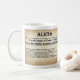 Känd menande mugg - Alicia. Den speciella personen i ditt liv förtjänar en den mugg tillfångataganden deras extrakt! Dessa keramiska muggar presenterar betydelserna och personlighetsdragen som är tillhörande med en variation av namn.