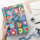 Denna papper har en Kandinsky-inspirerad utformning av koncentriska cirklar i många olika färg som upprepas över hela designen.