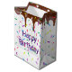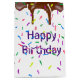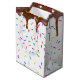 Färgfyllda godissprinkler på vitt med att droppa chokladicering Bakgrund färg kan ändras. Text kan redigeras.