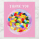 Färgillustration av färglöst gelégodis i en skål. Tema rosa och regnbåge i färg.