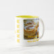 Tycker om vem inte en varm kanelbrun rulle nu och därefter med en hettkopp av kaffe?? Läckra rullar föreställas på denna kopp med gul färg och ordstäv
