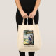 Sportar för denna stiliga carryall täckakonsten av UTDRAGET TILL KATASTROFEN, en metafictionäventyrroman vid liljan Gee. Småsaker: Berättare, en historiker, bär som henne, hänger lös handstiltillförsel i en kanfas något liknande denna (minuset bilden av hon själv och den metamorphic madmanen som har rövat bort henne).