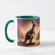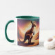Kangaroo mugg har en fängslande illustration av en kangaroo, en av Australiens ikoniska marsupialer, som på ett skickligt sätt tillrättavisar utsidan. Kangaroo framställs i ett naturalistiskt stil och fångas upp själva kärnan i dess smidighet och styrka. Kangaroos päls är mycket detaljerat och visar en blandning av varma och tanter, med subtila tips av grått, som skapar ett verklighetstroget och texturerat utseende. Bakom ben, det karakteristiska svan, och muskelkroppen framställs skickligt och ger en känsla av energi och livskraft.