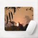 Kangaroos ska slå sig ner till natten. Cockatoos flyger över med en blazande solnedgång bakom sig. Datorkonst av Kathie Miller.