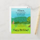 Roliga och söta känguru och blad, labyrintpussel, är tryckt på anpassade vykort med födelsedagstema. Barnets namn är tryckt högst upp; nedanför står frågan Kan du hjälpa kängurun att ta sig igenom labyrinten för att nå bladen. Ett lövrikt träd väntar på andra sidan av labyrinten. Nedanför labyrints scenen står Glad födelsedag. Alla textalternativ är lätta att anpassa på mallformulären. Tack för att du handlar på MazePuzzles på Zazzle.