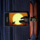 Denna illustration visar en silhouette av en känguru som omkring hoppar i grässlätt under solnedgång.