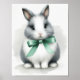 Söt kanin i svart och vitt med en touch av salviafärg på bandet.