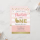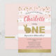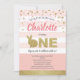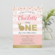 Rosa och guld och guld söt kanin tema fest inbjudan för baby flickas 1:a födelsedag.