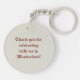 Planlägger tvåsidig akrylkeychain för rundan med en avbilda av en beige och burgundy Alice i underland i forma av en kanin. Baksidaen är beige och har anpassadetext som läser "tackar dig för att fira med mig i underland!", Se att matcha högvärdig metallkeychain för den stora rundan, knäppas och halsbandet. Se den hela underlandKeychain samlingen i den SPECIELLA party favors för HANDLAG | dela upp.