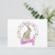 Söt liten tack-kort som du kan anpassa på baksidan. Designen visar en söt liten kanin omgiven av klotterblommor och ett lila tack-band. Baksidan av kortet lyder "hoppas du vet hur mycket din omtanke uppskattades .. kärlek och tack" följt av ditt/dina namn. Mallen är redo för din anpassning, men om du önskar ändra tack-meddelandet, klicka på "anpassa ytterligare".