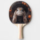 Kanin i svart medeltida huvuddräkt pingisracket