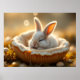 En bedårande liten kanin som vilar fridfullt i en varm och mysig naturlig miljö. Mjuk belysning, milda toner och en drömlik atmosfär gör detta konstverk perfekt för att skapa ett lugnande och lyckligt rum.