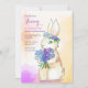En vårtema, akvarell, födelsedagsfestinbjudan med en kanin med en bukett blommor i handen och på huvudet. (<a href="https://www.freepik.com/free-photos-vectors/banner">Banner vektor skapad av freepik - www.freepik.com</a>). <br/><br/>Kortet är lätt att anpassa med din text, teckensnitt, typsnittsfärg och val av papperssorter.<br/><br/>Inte exakt vad du söker? Alla våra produkter kan utformas för att passa dina behov utan extra kostnad.<br/><br/>Kontakta oss helt enkelt på heartfelthelper@gmail.com<br/><br/>Koordinerande produkter tillgängliga: