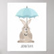 Kanin med paraply anpassat namn barnkammare väggko poster