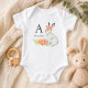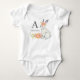 Den här söta babybody:n har en charmig akvarell-kanin omgiven av ömtåliga blommor, vilket skapar en mjuk och tidlös look. Personligad med ditt barns namn och initial, ger den en speciell touch som gör den perfekt som gåva, för fotografering eller för vardagsbruk. Skräddarsydd för både komfort och stil, är denna söta design säker på att bli en skattad souvenir.