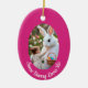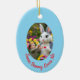 Kanin och barn foto rosa blått oval ram påsk julgransprydnad keramik