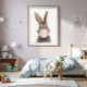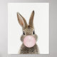 Kanin som blåser en rosa bubbla av tuggummi. Barnkammar konst för att dekorera ditt barns rum.