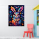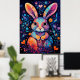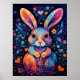 Kanin. Detaljerad med stora öron och söta ögon. Klotter och små mönster på kaninen. Virvlar, hjärtan och blommor.