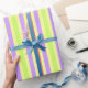 Detta påskharen inspirerade presentpapper har ränder i vackra nyanser av rosa, grönt och lavendel på gult från vår Kaninband färgpalett.