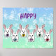 Cute äggformade kaniner som står i rad för att önska dig Glad påsk!