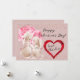Den här söta anpassade Alla hjärtans dag-kortet har ett pastell, dammigt rosa tema med ett sött kaninpar. Två kyssande kaniner är avbildade framför rosa akvarellrosor, med hjärtan utspridda runt dem. Ett exempel på namn är tryckt över ett hjärta längst ner som du kan anpassa till att inkludera ditt eget namn eller ett annat anpassat Alla hjärtans dag-meddelande.