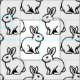 Ett upprepande mönster med kaninmotiv i omväxlande riktning.