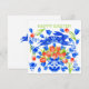 En kanin i det blå Delft-fineriet i Vår Tulips. Från handritade och målade Anni Arts illustrationer. Anpassa hälsning.