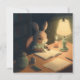 En kanin sitter vid ett skrivbord i stil på en barnberättelse bok.