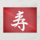 Postkort med Kanji gratulationer - 寿 - en populär kanji-symbol som betyder långt liv och gratulationer på japanska. Textdesign av Alma Wad på röd borstad metallbakgrund. Du kan nu anpassa detta kort med dina egna ord. Japanska eller engelska.