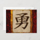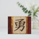 Kanji-tecknet för Modiga skrivs över gammal papper med vintage guld och blodrött som bakgrund. Elegant Asiatisk kanji-karaktär inspirerade till både hemmet och kontoret!