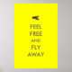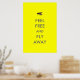Känn dig fri och flyt undan Poster. En gult som flyger med stor insekt poster med en husfluga och fullt ut med anpassadets textslogan "Feel Free and Fly Away". Den här coolan poster insekten för . Skriv ut är fullt anpassade, lägg till dina texter och bilder!