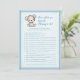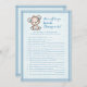 En bra brun och blå björn i baby för en pojkdusch. Vem känner Mamma Best? Blå filt med blå sydd kant gräns mot bakgrund. Mallar finns på baksidan.