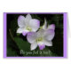 Vackra vita orkidéer med ömtåliga petaler som sades i lavender kom ut på det här äkta kärlek anteckningskortet för din och bara din.