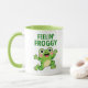 Rolig grodhoppning, tecknad stil, energisk och lekfull, glad stämning.