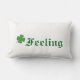 Den här roligten är den irländska kudden accentuerad med en 4 löv klöver och "känsla" skriven i grönt på framsidan. Baksidan är dessutom accentuerad med "Lucky" skriven i grönt och en söt kyss, skapar det som en söt gåva till St. Patrick's Day. Om de köper två kuddar kan de arrangeras på sängen bredvid och säga "Känn Lucky".