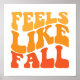 Den här fet och livfulla fallmatade teckningen innehåller frasen "Feels like Fall" som visas på en framträdande plats i ett reflexinspirerat, tjockt teckensnitt. Texten är placerad i en dynamisk, lekfull layout som ritar öga och lägger till en känsla av rörelse i designen. Den varma övertoningspaletten i färg övergår från gyllene gult till djup orange och fångar perfekt rikens nyanser i höst löv. Konstruktionens enkelhet, parad med dess nostalgiska typografi och träffande färg, gör det till ett perfekt för säsong-dekor, kläder eller reklammaterial som firar fallets ankomst. Denna teckning är idealisk för att väcka de mysiga och nostalgiska känslor som förknippas med höstsäsongen.
