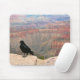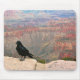 En korp står på kanten av Grand Canyon längs Desert View Drive och blickar ut över lager av sten som sträcker sig in i fjärran. Kontrasten mellan den mörka förgrunden och den vidsträckta kanjonlandskapet fångar en tyst stund på kanten.
