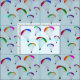 En regnbåge med färgad paraglider canopies finns i mönster, där piloter sitter under sitt flerfärgade vingar och flyter på en (anpassade) bakgrund med blek blå. En glad och upplyftande design som återger minnet av sommarsemester i bergen eller på stranden.