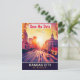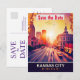 Kansas City save the date bröllopsinbjudan, resebrevkort. Stadens centrum vid solnedgången.
