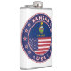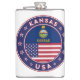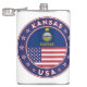 Kansas-bricka med flagga i delstaten Kansas och flagga i USA färg, avrundat. Kansas emblem. Kansas försegling. Samling i USA Stater.