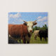 Kansas ko som skjutas ut i en beta med grönt gräs, blå himmel och molnet med träd i en beta. Det är på ett PUSSEL.
